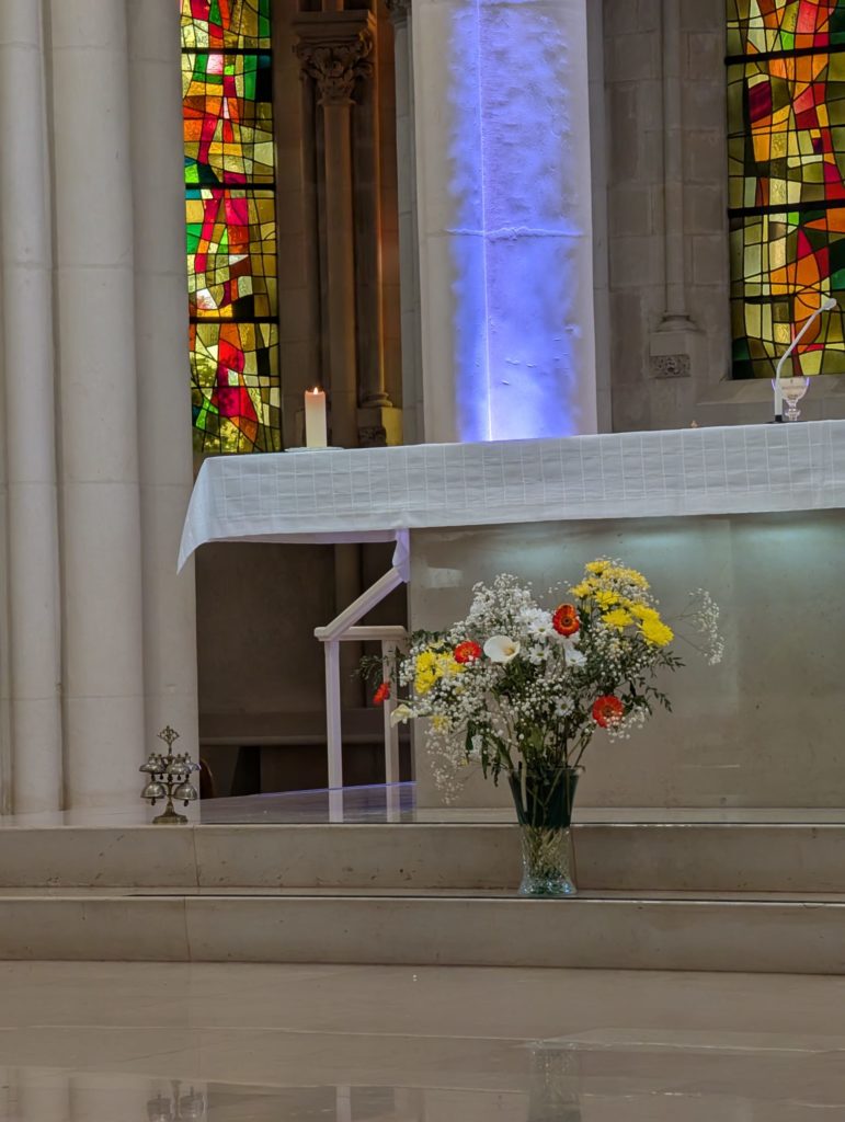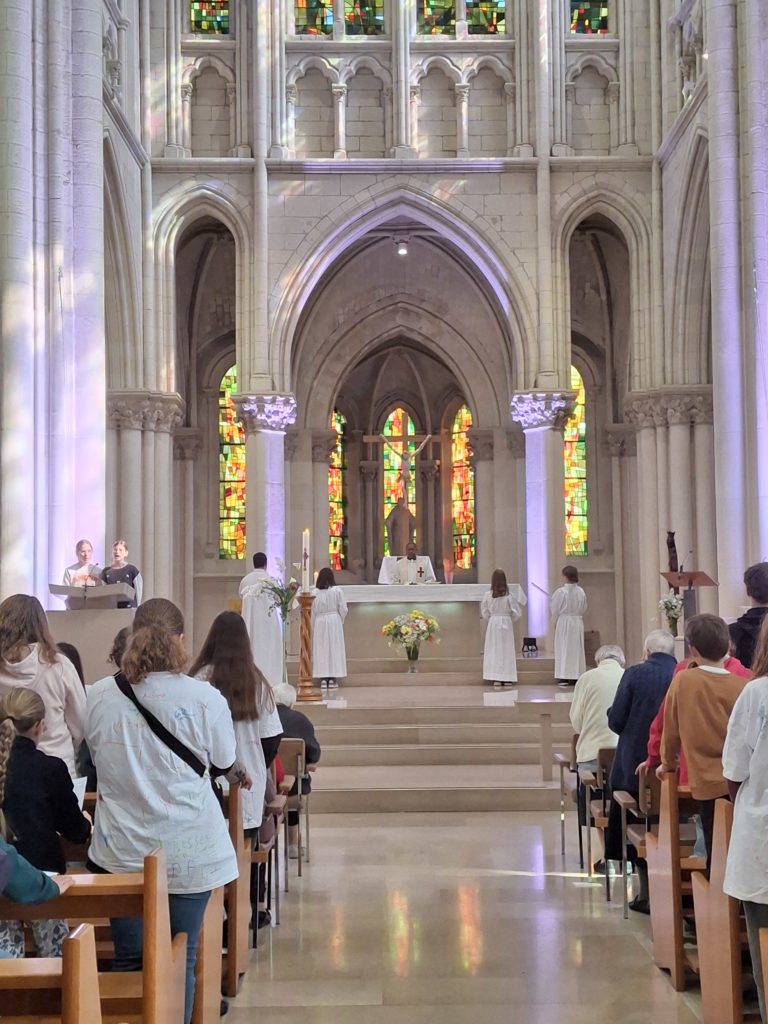 Dès le premier jour, ils ont pris part à la messe dominicale au sein de la Communauté, découvert le lieu grâce à la présentation de Sœur Thérèse et Sœur Marie-Madeleine, écouté le témoignage de Serge François, miraculé de Lourdes, puis vécu un temps de louange suivi d’une procession aux flambeaux jusqu’à la grotte de Lourdes.