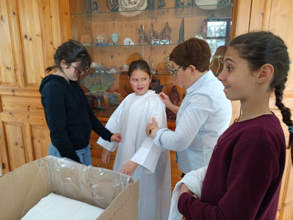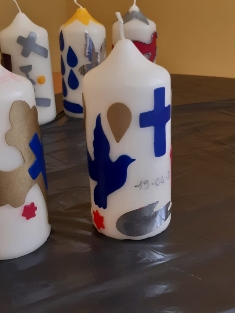 Le lundi, ils sont entrés pleinement dans le cœur de la préparation avec des enseignements sur le baptême et le sacrement de réconciliation, qu’ils ont pu recevoir au cours de cette journée. Ils ont également réalisé un dizainier en lien avec le témoignage de la veille et décoré leur cierge.